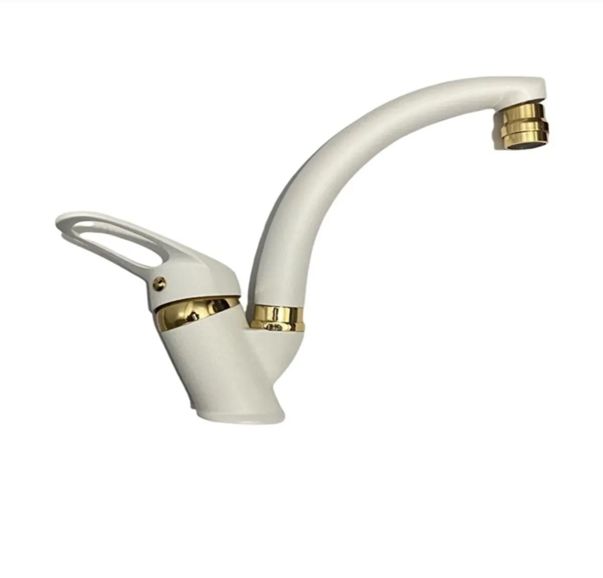 Beyaz Gold 360 Derece Oynar Başlıklı Lavabo-Mutfak Bataryası