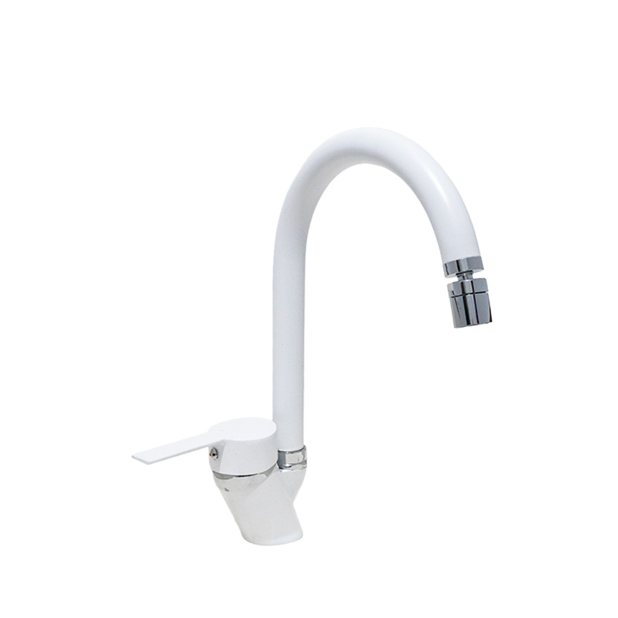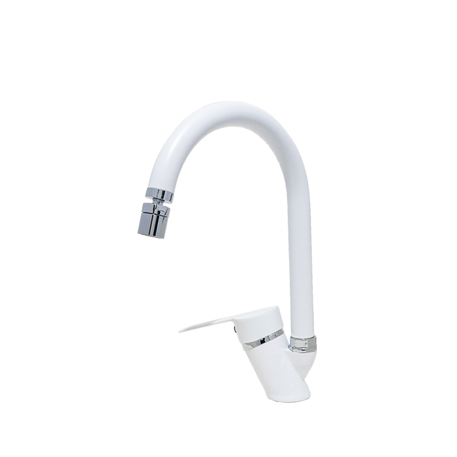 Beyaz Krom 360 Derece Oynar Başlıklı Mutfak-Lavabo Bataryası Baston Borulu