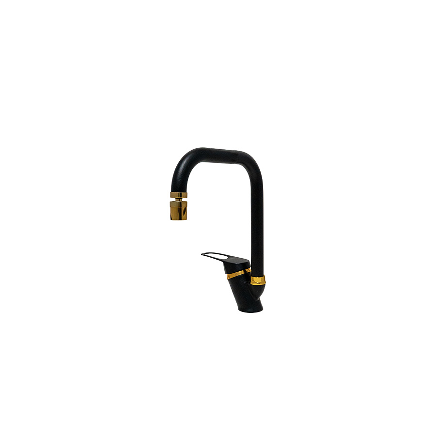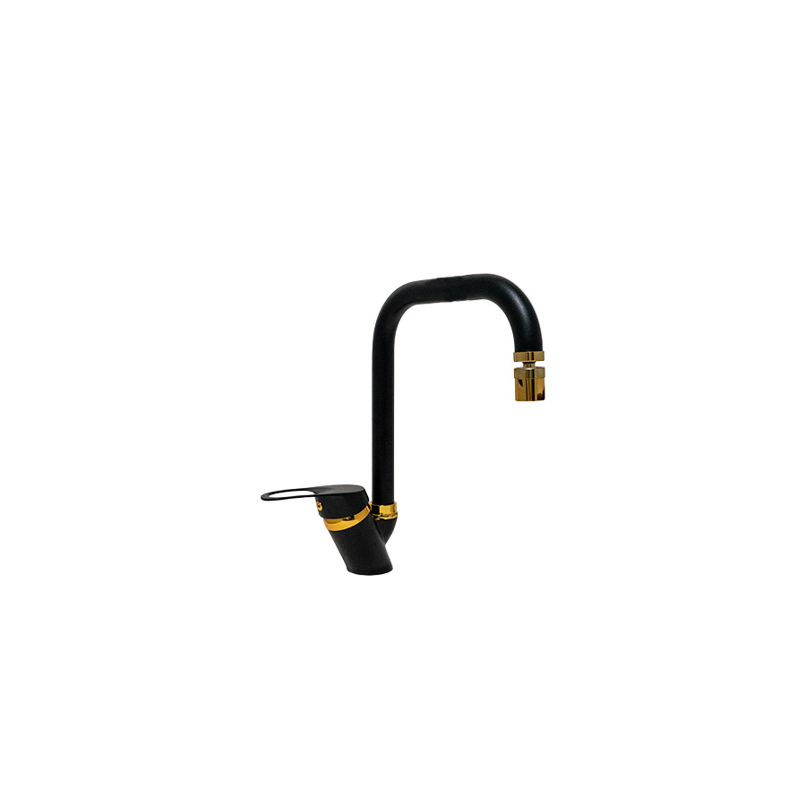 Siyah Gold 360 Derece Oynar Başlıklı Mutfak-Lavabo Bataryası Köşe Borulu